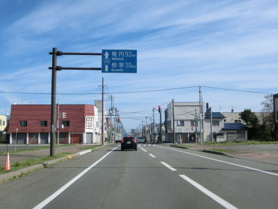 | 282.「稚内92km 枝幸30km」 | 283.浜頓別町の市街地を走る | 284.R238交差点 |