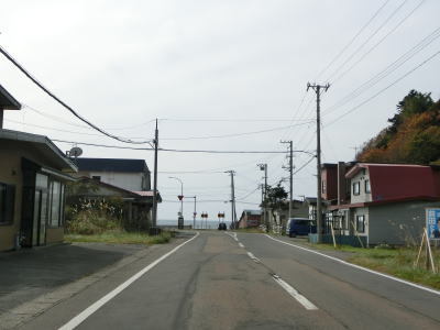 | 駐車場とトイレが開放されている熊石防災ステーション付近から平野部になるため勾配がなくなる。カーブのない直線道路を走っていると沿線の家屋が増える。熊石鮎川町集落の北西でR229・R276交差点に突き当たる。渡島半島を横断するという役割は果たしためこの交差点が起点と言われても違和感はないが、この先も続いており左折して江差・乙部方面に進む。R276も重複しておりここから起点までは3本の国道の重複区間となっている。なお、R276がR229に重複している距離は190kmと非常に長く、国道の重複区間の距離としては最長である。 | ||