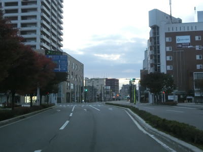 | 7.4車線道路が続く | 8.啄木小公園の前を通過 | 9.金堀町交差点 |