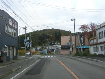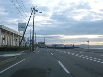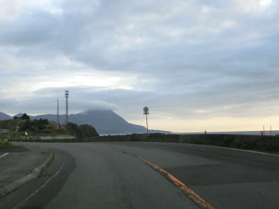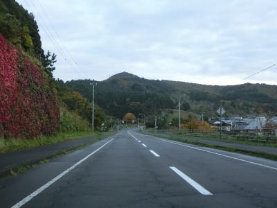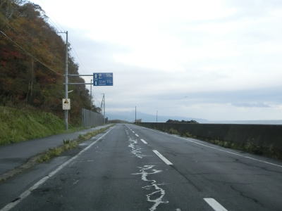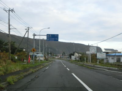 | 尻岸内漁港を過ぎると前方に恵山が見えるようになる。海岸に沿った少し高い場所を走った後に緩やかな勾配を下る。正面に海向山を望みながら平坦な直線道路を走っていると道の駅「なとわ・えさん」を通過する。 | ||