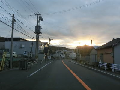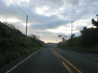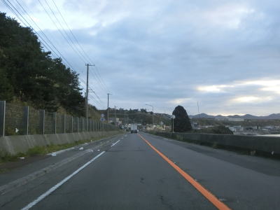 | 汐泊川橋交差点からも家屋が建ち並ぶ間を2車線道路で走り抜ける。交通量は非常に少ないが、これは早朝という時間帯のせいかもしれない。市道が交差している左カーブから上り勾配となって内陸に進む。交差している市道は海沿いの集落内を通っており、おそらく旧道と思われる。 | ||