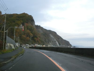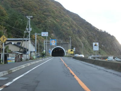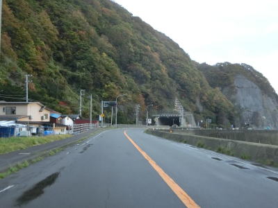 | 立岩覆道を出てからは家屋が疎らな集落を通り抜けて白井川覆道をくぐる。その後しばらくは集落が途切れるが、道路状況に変化はなく海に沿った平坦な2車線道路が続いている。 | ||