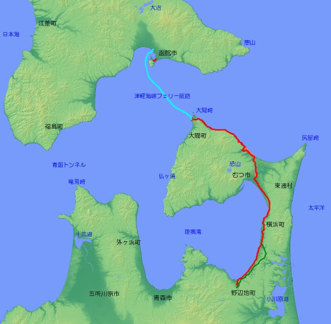 | 主な経由地 | 北海道函館市… …青森県大間町〜むつ市〜横浜町〜野辺地町 |