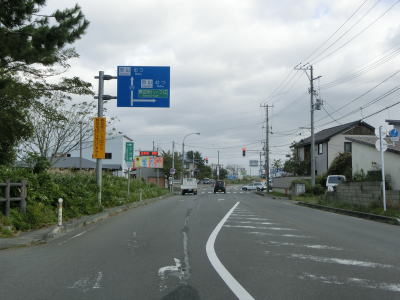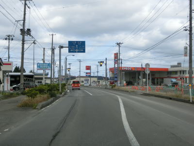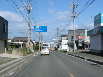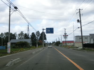 | 第4田名部街道踏切から少し走って堺川という小さな川を渡ってむつ市に入る。その後もアップダウンのある2車線道路が続いている。交通量はやや増えているが、信号機付きの交差点が少ない事もあって流れは良好である。 | ||