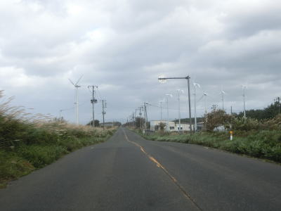 | 13.青森r5交差点 | 14.アップダウンのある快走路 | 15.沿線には多くの風車が建っている |