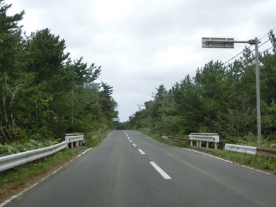 | JR大湊線の内陸側を走っていると町境を通過して横浜町に入り、少し走るとゆずりあい車線が現れる。登坂車線とはなっていないため勾配はほとんどなくほぼ平坦である。ゆずりあい車線が終わってからは普通の2車線道路を走る。 | ||