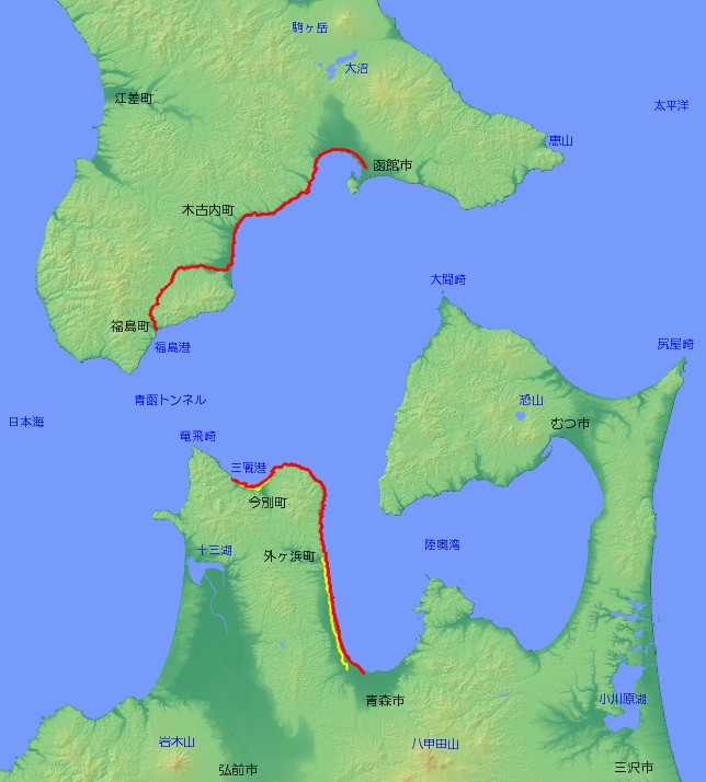 | 主な経由地 | 青森県青森市〜外ヶ浜町… …北海道福島町〜木古内町〜北斗市〜函館市 |