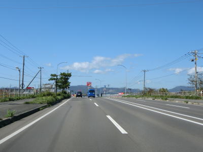 | 45.知内橋 | 46.知内町営スキー場の傍を通過 | 47.内陸に入ってからも快走路 |