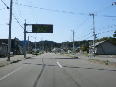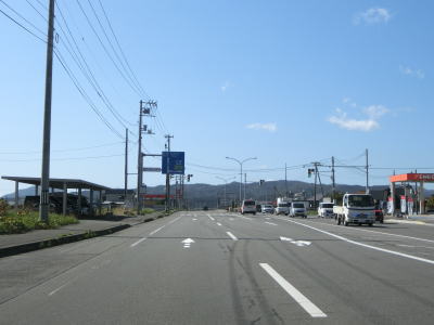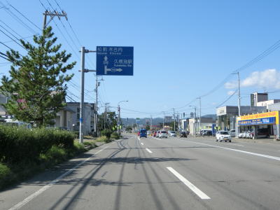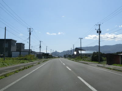 | 松前半島の燈明岳や丸山と思われる山並みを見ながら走っていると釜谷集落を通り抜ける。駅も置かれている集落だが、広い路側帯が設置されており、走りにくさは微塵も感じない。 | ||