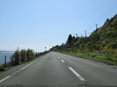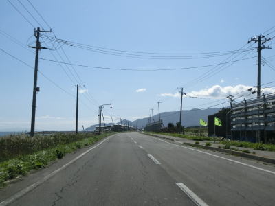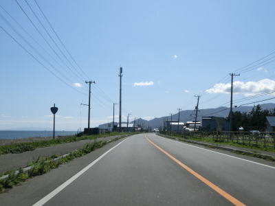 | 39.北海道r383交差点 | 40.知内町に入る | 41.知内町内も海岸沿いを走る |