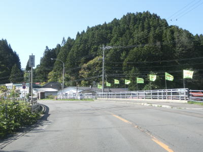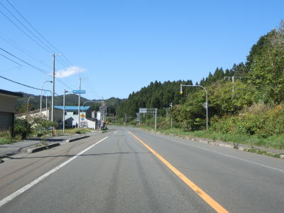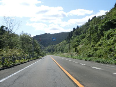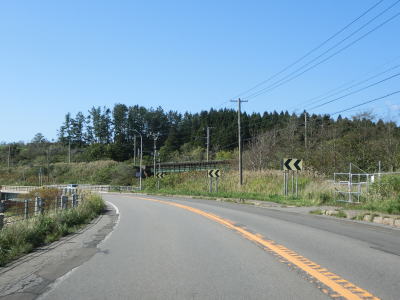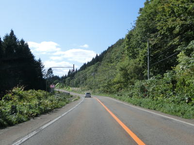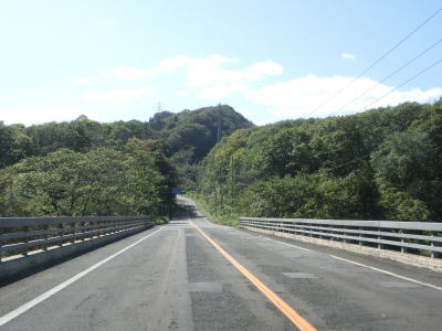 | 知内川の流域の開けた谷筋を緩やかな勾配で上って行く。川の蛇行ぐらいから比べても国道の線形は良く、走りにくさは微塵も感じない。JR松前線があった頃は千軒駅が置かれていた千軒集落を通り過ぎると市の渡橋を渡りが、以降は集落が途切れた状態となる。 | ||