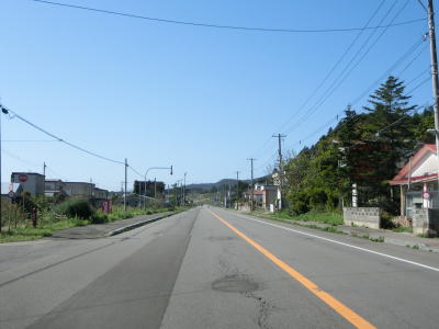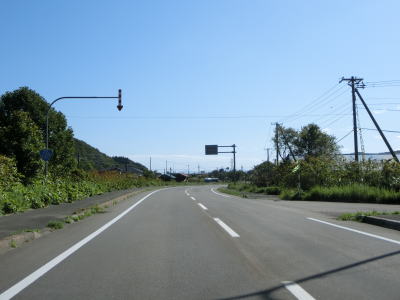 | 海沿いの2車線道路を快走しながら集落を通り抜ける。かつてはJR松前線が少し内陸を並走していたが、青函トンネルを含む海峡線が開業するに先立って廃線となっている。知内町の中心部に近付くと北海道r531・r698との交差点を通過する。案内標識にはr698となっているが、ソトバはr531となっている。r531は小谷石渡島知内停車場線、r698は湯の里渡島知内停車場線という路線名である事から重複区間であると思われ、どちらも誤りではないのだろう。 | ||