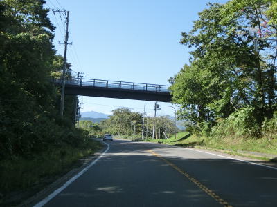 | 道の駅「しりうち」の前から下り勾配となり、その先で北海道新幹線の高架橋をくぐる。道の駅には青函トンネルに出入りする新幹線の車両を撮影するための展望撮影台が設置されており、国道と新幹線の交差点地点の近くにも展望撮影台が設置されている。 | ||