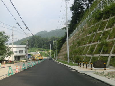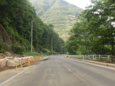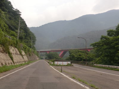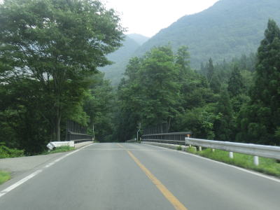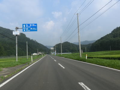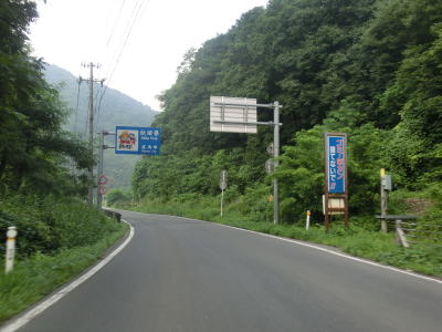 | 安代ICからの直線道路は岩手r6手前の急カーブによって減速を余儀なくされる。しかしr6交差点を通過してしまえば目名市川沿いの直線的な快走路になる。谷の幅が狭くなり水田がなくなると一旦集落が途切れて緩やかな上り勾配となる。目名市集落と滝ノ又集落の間には歩道の法面が崩落していたが、進入を阻むテープの新しさからして東日本大震災ではなくつい2日前の集中豪雨によるものと推測される。 | ||
