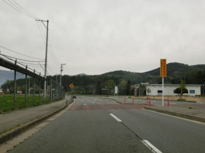| 寒風跨線橋を通ると右にカーブして緩やかな勾配を下る。左側には猿ヶ石川が流れており、堤防は桜並木となっている。その堤防上の道路は前述の岩手r503遠野東和自転車道である。猿ヶ石川の右岸を自転車道とともに走っているとR396日影橋交差点に至る。この交差点はR396の起点であり、終点の盛岡市まで北上する国道である。左折の日影橋を渡って遠野市街に向かう道路は岩手r283に指定されていたが、前述のバイパスが開通して事で市道に降格したようである。ウォッちずではまだ県道色に塗られているが、案内標識にはヘキサがシールで消されていた。 | ||