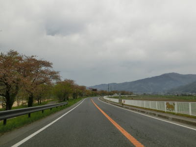 | 79.跨線橋からの勾配を下る | 80.堤防上は桜並木 | 81.R396日影橋交差点 |