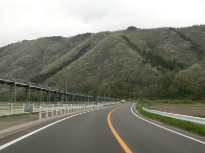 | 山裾を走っていると右にカーブして早瀬川からもJR釜石線からもR283釜石道からも離れる方向に進む。緩やかな勾配を上って新平田峠を越えて下りに転ずる。峠を越えずに早瀬川沿いを走り平倉駅付近を通る道路が旧道かもしれない。 | ||