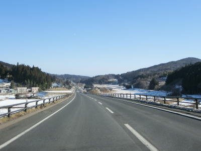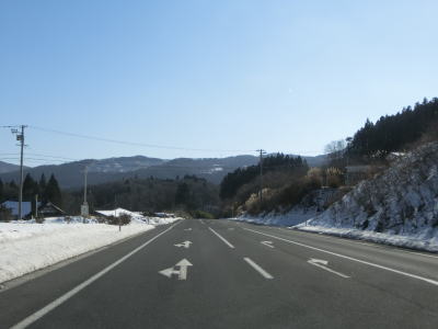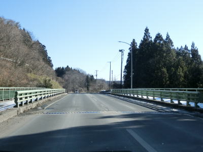 | 青野沢川に架かる橋を渡り終えると上り勾配となり、津波浸水区間が終わる。集落が途切れて山間部のような雰囲気を走っていると岩手県陸前高田市に入る。2回目の岩手県に入ってからも道路状況に変化はなくカーブの多い2車線道路が続く。 | ||
