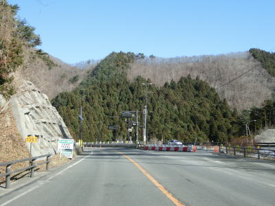 | 桟敷ヶ森トンネルを抜けた直後に新月パーキングを通過するが、出入口は交差点になっているため少々わかりにくい。新月パーキングを過ぎると八瀬川に架かる山びこ大橋と猿岩橋を渡る。 | ||