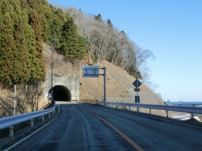 | 宮城r239交差点を左折した直後に右の急カーブを曲がり、r239の現道との交差点を通過する。その後緩やかな上り勾配となるが、過去の津波浸水区間が始まる。上り勾配にもかかわらず津波浸水区間に入る事に違和感を覚えなくもないが、これは海に近くなるためと思われる。緩やかな勾配を上っているとr239現道の上を通過して只越トンネルをくぐる。トンネルを出ると勾配が少し急になり、津波浸水区間も終わる。 | ||