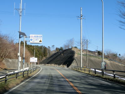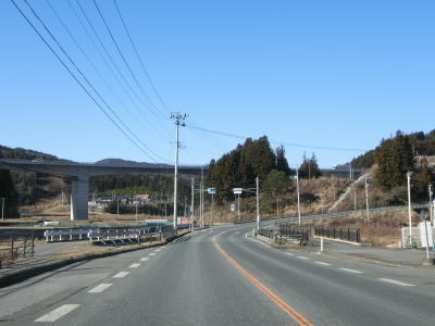 | 宮城r218交差点から上り勾配が始まり、過去の津波の浸水区間を出る。ここでいう“過去の津波”とは2011年の東日本大震災を指している。津波浸水区間が終わってすぐに登坂車線が現れる。登坂車線が終わってからも上り勾配は続いている。 | ||