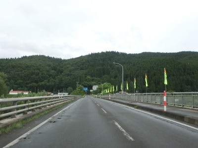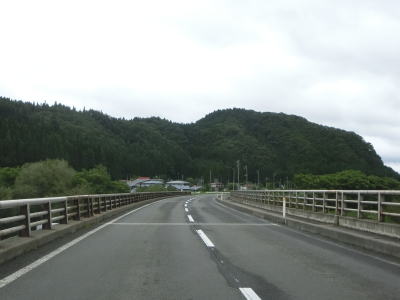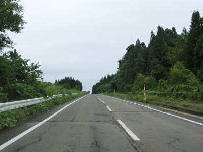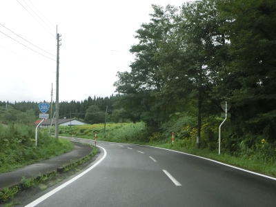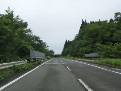 | 米代川の右岸の2車線快走路を淡々と走る。左岸にセンターライン付きの2車線道路があるが、これは大館バイパスの旧道である。秋田r136がJR花輪線の大滝温泉駅から大滝橋の手前(南詰)までしか指定されていないのはその名残だろう。大館バイパスの供用は1983年と40年近く経過しているが沿線の建物は少ない。 | ||