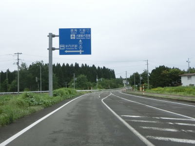 | 湯の岱温泉を通り過ぎて少し走ると市境を通過して大館市に入り、小森川流域の2車線道路が続いている。大館市の最初の集落の小坪沢集落の北の端を通り抜ける。集落の中心部と通っている道路が旧道だろう。 | ||