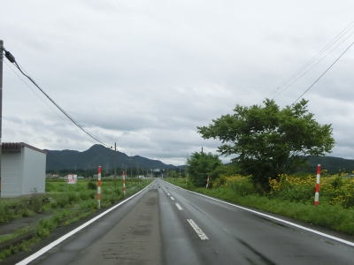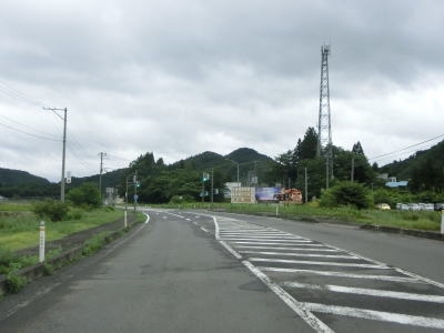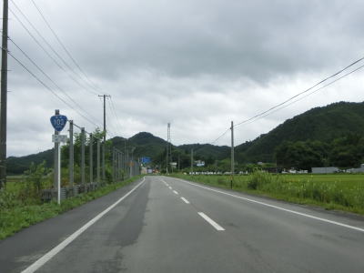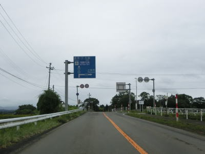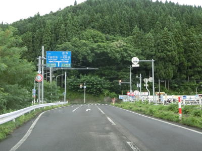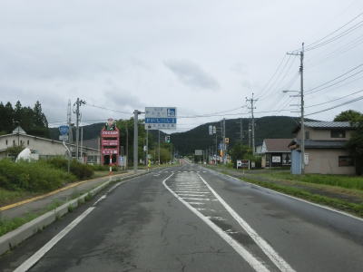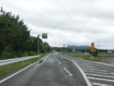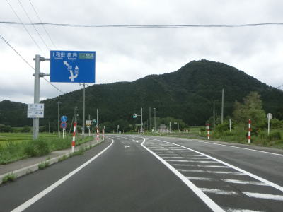 | 扇田大橋を渡り終えた先でR103・R104中山交差点に突き当たる。案内標識にR285のおにぎりは表記されていないが、右折して鹿角・十和田湖方面に進む。同じくR104も表記されていないが、R103の大館市街と鹿角の両方面に重複している。 中山交差点からはR103とR104の3国道重複区間を走る。これまでと同様に平坦でカーブの少ない2車線道路が続いており、交通量が多くない事もあって非常に走りやすい道路状況である。 |