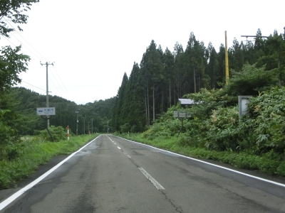 | 緩やかなアップダウンとカーブを繰り返す2車線道路を淡々と走る。沿線に集落や田畑はあるが規模は小さく、それらを通り抜けているR285の交通量も非常に少ない。旧道らしき道路との交差点を何ヶ所か通過するが、集落を通り抜けているものもあるため閉鎖されていない。 | ||