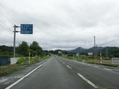 | 古川新橋を渡るが、これまでの米代川に架かっていた橋とは異なり支流の大湯川に架けられている。緩やかな右カーブの先でR4東北道の陣場橋の下をくぐり、R103・R104・R282上陣場交差点に至る。この交差点がR285の終点であるが、R103とR104に重複しているため存在感は薄い。なお、R104はこの後もR103との重複区間が続いており、単独区間になるには20km近く走らなければならない。 | ||