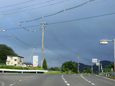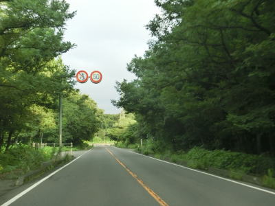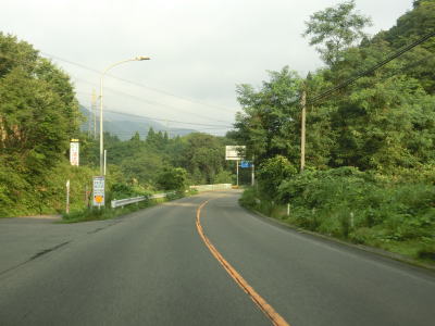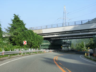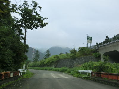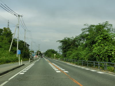 | 集落が途切れている区間も整備された2車線道路で走りやすい。歩道は設置されているものの、8月という時期のせいもあるだろうが、雑草で覆われており機能を果たしているとは言い難い。新名乗橋を渡った直後に古関PAに行く事ができる道路との交差点があり、PA内のコンビニの案内看板も設置されている。ただし、古関PAはスマートICはなく通常のPAのため、外に車を停めて歩いて店舗に向かう事になる。ちなみに上下線どちらにもコンビニがあり同じ系列である。 | ||
