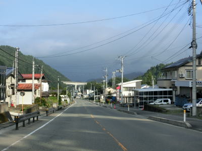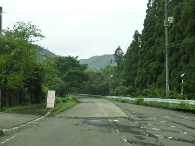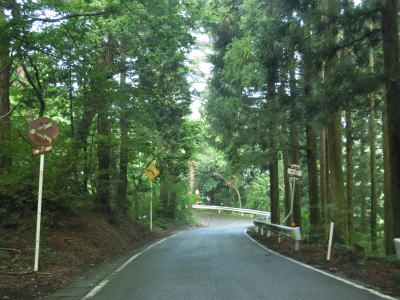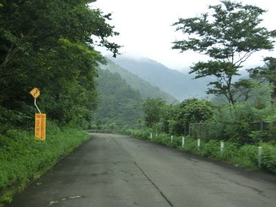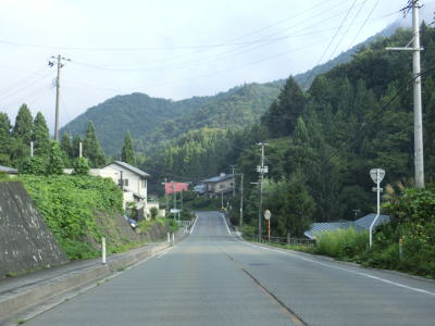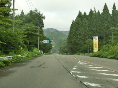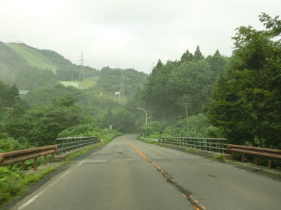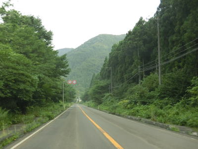 | 右カーブを曲がると8%の急勾配を下って行沢橋を渡って左カーブを曲がる。滑川の右岸を走っているとE48山形道の滑川橋をくぐり、田志戸集落を通り抜ける。笹谷峠区間は過ぎて道路状況が良くなっているが交通量は少ない。 | ||