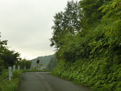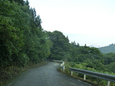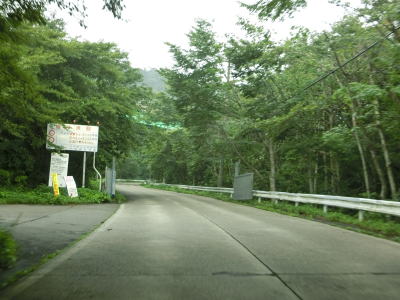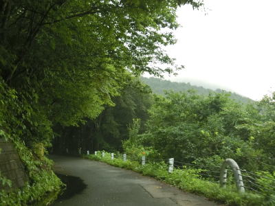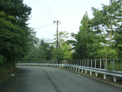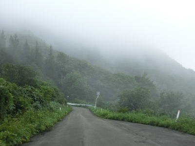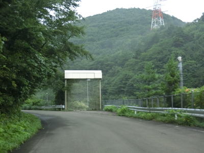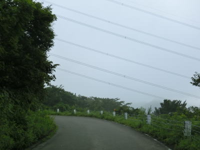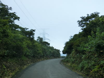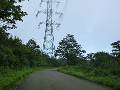 | 有耶無耶関跡に近い右ヘアピンカーブを以降は急カーブが少なくなる。送電線の下をくぐって少しだけその下を走る。標高は900m近く東側は開けているのだが、走行した日は霧が発生していたため眺望は利かなかった。 | ||