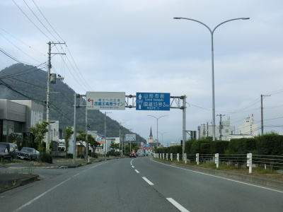 | 山形蔵王ICから約2.4km、右カーブの先でR13・R48松山交差点に至る。二桁国道との交差点であり、ここが終点であっても違和感はないのだが、さらに鶴岡・長井方面に続いている。案内標識にR48のおにぎりは表記されていないが、R13の米沢・新庄両方面に重複している。 松山交差点の直後には中央分離帯があるがラバーポールに取って代わられる。沿線の建物も交通量も多い片側2車線道路を走っていると松山交差点から約1.7kmで終点のR112・R348鉄砲町交差点に至る。R112はR13の旧道であり、R13がバイパスに一本化されて旧道がR112となってからも終点は移動されなかった。なお、R348もこの交差点が終点である。 |