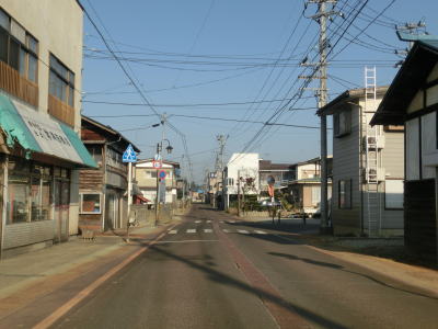 | 松ヶ根橋を渡り終えると右にカーブした後に上り勾配の左カーブを曲がり、JR米坂線をオーバーパスして右にカーブしながら勾配を下る。以降は米坂線の東を並走しながら北上する。成島駅が近くにあるが周辺の家屋の数はさほど多くない。 | ||