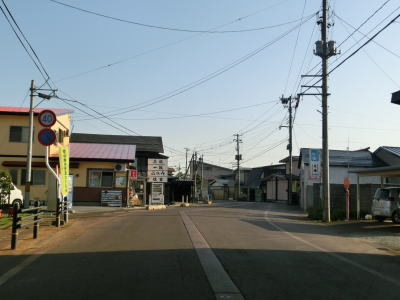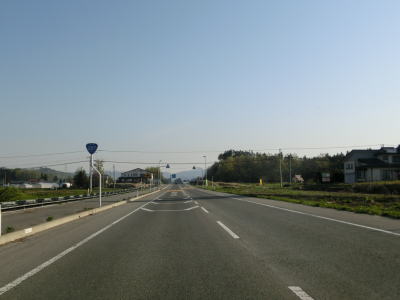 | 市道が交差している左の急カーブを曲がると進行方角が北から西へと変化する。そのまま平坦な2車線道路を走っていると町道との交差点を通過する。案内標識には直進のR287にも右折の町道にも長井と案内されている。 | ||