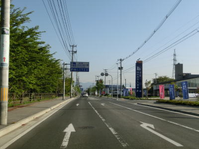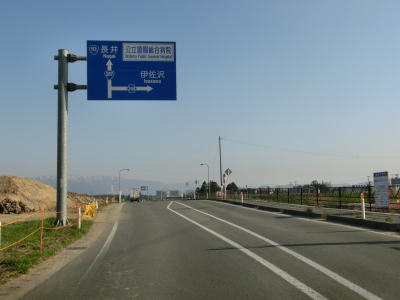 | 歩道は片側にしか設置されていないが路側帯が広く見通しが良いため非常に走りやすい2車線道路が続く。長井南バイパス自体は片側2車線で計画されており、2018年4月の時点で東側で工事が行われていた。置賜総合病院の東でR113西大塚交差点を通過する。交差点以北も引き続き長井南バイパスとして整備された区間である。 | ||