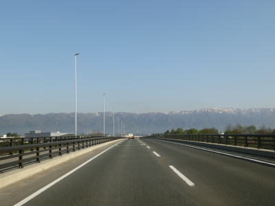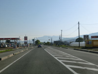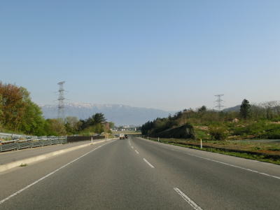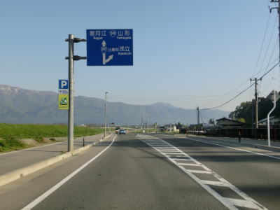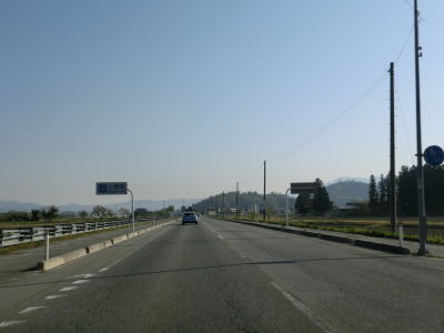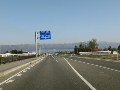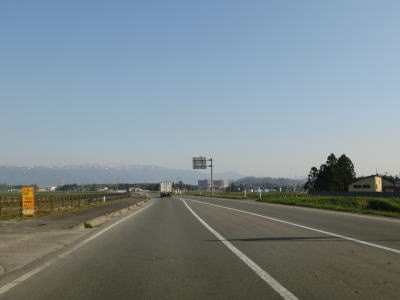 | 16.沿線の家屋が少ない場所は快走路 | 17.センターラインが消えている区間が多い | 18.朝日連峰を遠望 |