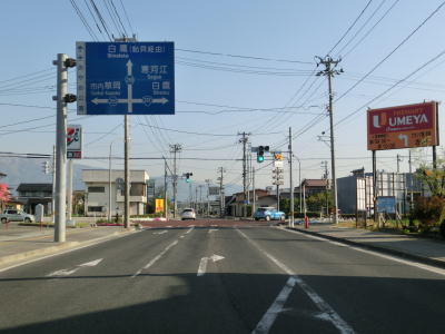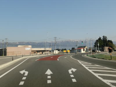 | 道の駅を通過してからも市街地の中の2車線道路を走っていると、山県r253・r259舟場交差点を右折して寒河江・白鷹方面に進む。直進のr259にも白鷹が案内されているが、鮎貝経由とされている。 | ||