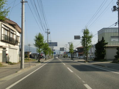 | 成島駅を通り過ぎてすぐに山形r237との交差点を通過するが、案内標識にヘキサは表記されていない。平坦ながら緩やかなカーブが連続する2車線道路を淡々と北上する。鬼面川の東にR13があり、そちらがメインルートとして機能しているせいか、R287の交通量はあまり多くない。米沢市の北部ではセンターラインが消えかけている。 | ||