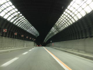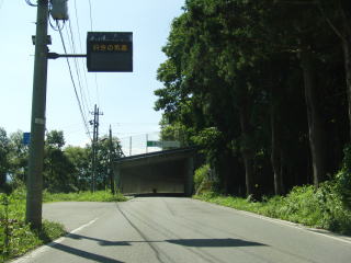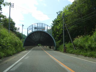 | 登坂車線がある状態で戸板山スノーシェルターに入り、登坂車線が本線に合流した直後に駒止トンネルに入る。豪雪地の宿命か、トンネルとスノーシェルターが一体化しており扁額等は見えない。 トンネルを抜けると「駒止峠 標高923m」という標識が目に入るが、本来の駒止峠(旧道)は北西に直線で約2.5km離れた所にある。トンネルからは8%の下り勾配となり、反対車線には登坂車線が設けられている。旧南郷村側には急カーブがいくつかあったものの旧田島町側は勾配はきついものの急カーブはほとんどない。 |