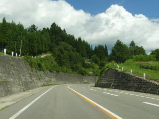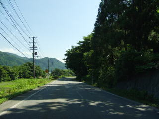 | R401が重複してきたからと言って道路状況には全くと言っていいほど変化がない。改良された交通量の少ない2車線道路を淡々と走るだけである。山が迫っている場所にロックシェッドがあるがそれが唯一とも言える道路構造物上のアクセントである。伊南川の右岸を集落を繋ぎながら淡々と走る。 | ||
