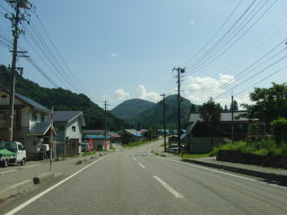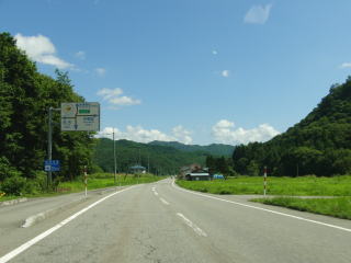 | 桧沢川を渡ってからは川との間の平地を2車線快走路で走り抜ける。見通しが良く交通量が少ないため走りやすい。いくつかの小さな集落を通るが、家屋が密集しているのは国道から少し外れている事から現在の国道はバイパスとして建設されたものと思われる。 | ||
