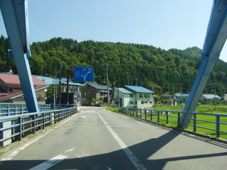 | 福島県側最初の集落となる入叶津集落に入ると左にカーブしてから叶津川を渡る。2011年7月の新潟・福島集中豪雨によって大きな被害の出た叶津川だが、この橋は少し高い位置にあるため落橋を免れている。川沿いの狭い平地を走っていると小規模の中平集落を通り抜ける。中平集落の先で再び叶津川を渡るが、その辺りの被害が甚大だったようで、補修によって路面は新しくなっており、叶津川は復旧工事が行われていた。 | ||