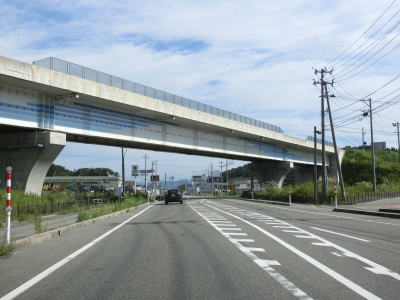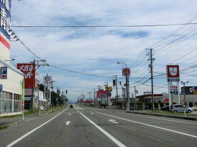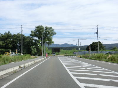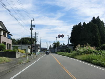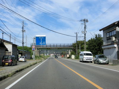 | 片側にだけ歩道のある2車線のバイパスを北上していると土沢跨線橋でJR米坂線を越える。緩やかな下り勾配の先でR113との交差点に突き当たり、左折してR113との重複区間を新潟・村上方面に進む。 | ||