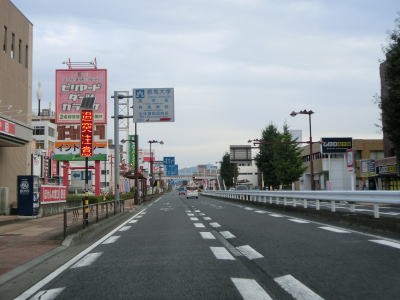| 市道との国領町2交差点を過ぎると中央分離帯が現れてそのまま片側2車線道路になり、群馬r6群大病院東交差点を通過する。沿線には郊外型の商業施設が多く、昼間であれば交通量が多いであろう事は想像に難くない。上下線ともに左側車線はバス優先車線(7:30〜8:30、17:00〜18:00)となり、その時間帯は駐停車禁止となる。 | ||