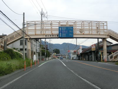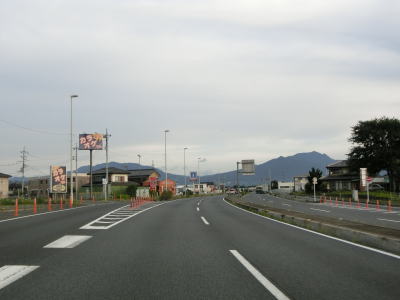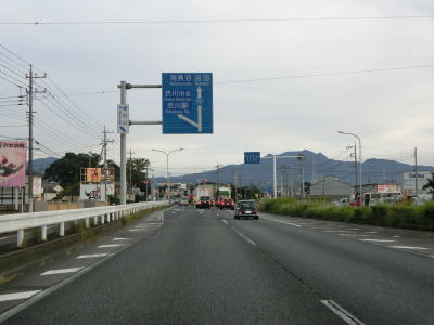 | 橘山の麓で市境を越えて渋川市に入り、程なくして群馬r160下箱田交差点を通過する。市境からしばらくは中央分離帯にゼブラゾーンが付加されて広くなっておち、川寄りには拡幅用地と思われる土地も確保されている。利根川の左岸を北上していると左にカーブして群馬r156坂東橋東詰交差点を通過する。 | ||
