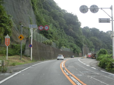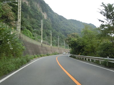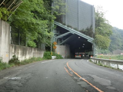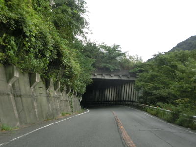 | 左の急カーブを曲がって集落が途切れてから長短4つのロックシェッドをくぐり、最後に綾戸トンネルをくぐる。綾戸トンネルの前後にもロックシェッドが接続しており、一見しただけではトンネルには見えない。 | ||