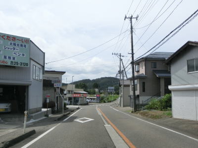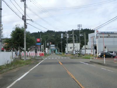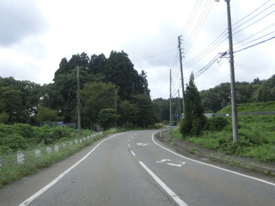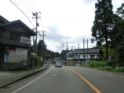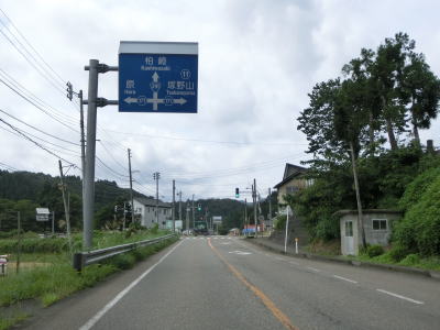 | 平坦な2車線道路を走っているとR117・R351・R403桜町上交差点を通過する。案内標識が立てられていた場所で工事が行われていたためか、案内標識は一時的に撤去されており看板に置き替わっていた。おにぎりはR117とR291しか表記されていないが、R351とR403はどちらもR117の両方向に重複している。 | ||