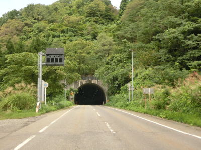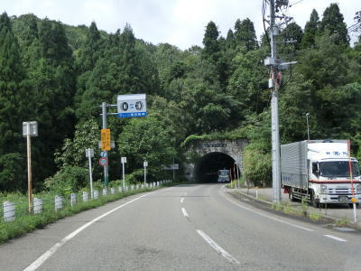 | 武石交差点からも上り勾配が続いている。武石集落を通り過ぎると沿線の家屋がなくなる。カーブは多いもののセンターライン付きの2車線道路であり走りにくさはさほど感じない。小千谷市と柏崎市を最短で結ぶルートだが交通量は少ない。右カーブの先で武石トンネルをくぐる。 | ||